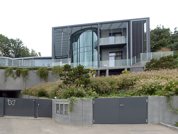 Ein Gelände am Hang wird zur abgestuften Tribüne für exklusives Wohnen.