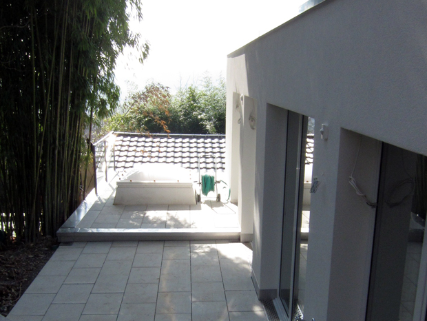 Die weitgehend unzugängliche Dachterrassenfläche sowie die zur Aussichtslage verschlossene Fassade werden durch die räumliche Ausweitung im Küchenbereich und die grosszügige Öffnung der Fassade optisch und nutzungsmässig miteinander verbunden.